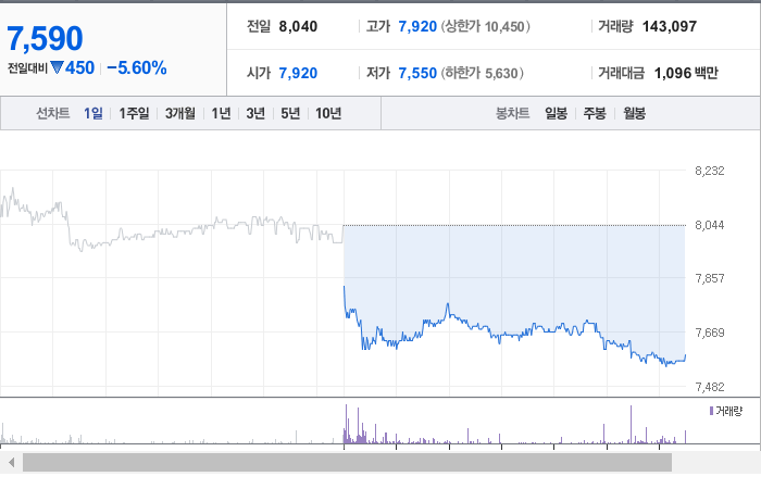 아이씨티케이의 현재 주가는 7,590원으로, 전날 대비 450원이 하락한 상태입니다. 주주 현황을 보면 이정원 씨와 그 외 19명이 총 29.54%의 지분을 보유하고 있습니다. 아이씨티케이는 보안 장비를 전문으로 하는 기업이며, 장중 주가는 7,590원입니다. 이 회사의 시가 총액은 1,003억 원이며, 발행된 주식 수는 13,212,496주입니다. 외국인 보유 비율은 0.45%이고, 장중 거래량은 145,971주에 달했습니다. 아이씨티케이는 5억 원의 매출을 기록했습니다.